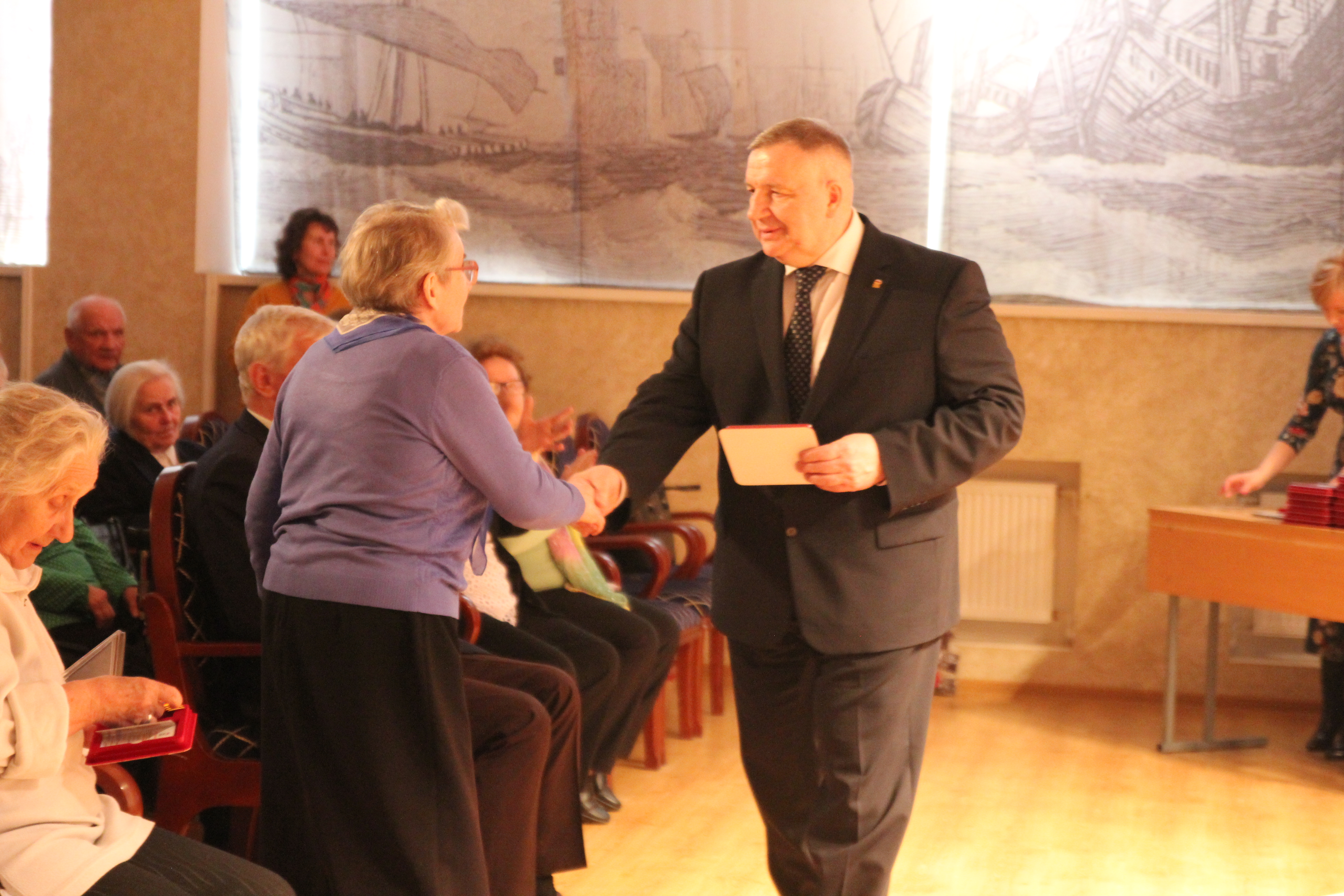 Поздравить собравшихся с первой круглой датой пришли Сергей Николаевич Никешин, глава муниципального образования Ульянка Николай Юрьевич Киселев, председатель Региональной общественной организации «Санкт-Петербургское общество детей войны, погибших, пропавших без вести родителей» Красиков Николай Федорович, председатель Кировского отделения Региональной общественной организации «Санкт-Петербургское общество детей войны, погибших, пропавших без вести родителей» Тимофеева Любовь Ивановна. 234 членам общественной организации были вручены памятные медали "Дети войны", удостоверения к ним и подарки. После торжественного награждания от имени депутата были вручены благодарности председателю Кировского отделения Региональной общественной организации «Санкт-Петербургское общество детей войны, погибших, пропавших без вести родителей» Тимофеевой Любови Ивановне за большой вклад в развитие общественного движения и многолетнюю плодотворную деятельность на благо муниципального образования Ульянка, председателю Региональной общественной организации «Санкт-Петербургское общество детей войны, погибших, пропавших без вести родителей» Красикову Николаю Федоровичу за большой вклад в развитие общественного движения и активную работу по патриотическому воспитанию подрастающего поколения в Санкт-Петербурге, а так же членам общественной организации: Барабохиной Агнии Игнатьевне, Едемской Надежде Тимофеевне, Кормилицыну Владимиру Васильевичу, Мацкевич Лилии Алексеевне и Семеновской Светлане Ивановне за активное участие в общественной жизни муниципального образования Ульянка и успешную работу по патриотическому воспитанию подрастающего поколения.