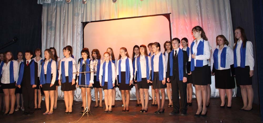 В исполнении хора средней школы № 506 (на фото) прозвучала «Баллада о ледовой трассе».