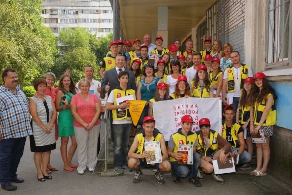 31 июля 2014 года на базе лицея № 378 состоялось торжественное закрытие летнего трудового отряда школьников "Ульянка". Ваш депутат традиционно поздравил и наградил грамотами и подарками бойцов отряда и их бригадиров. На линейке присутствовали представители МО Ульянки, обслуживающей организации ОАО "СИТИ-СЕРВИС", которые поддерживали и способствовали работе трудового отряда. Лучшим бойцом отряда признан учащийся школы № 223 Белячков Сергей! Спасибо директору лицея № 378 Ковалюк Светлане Юрьевна за достойную организацию линейки! По итогам работы ребята получили заработую плату.