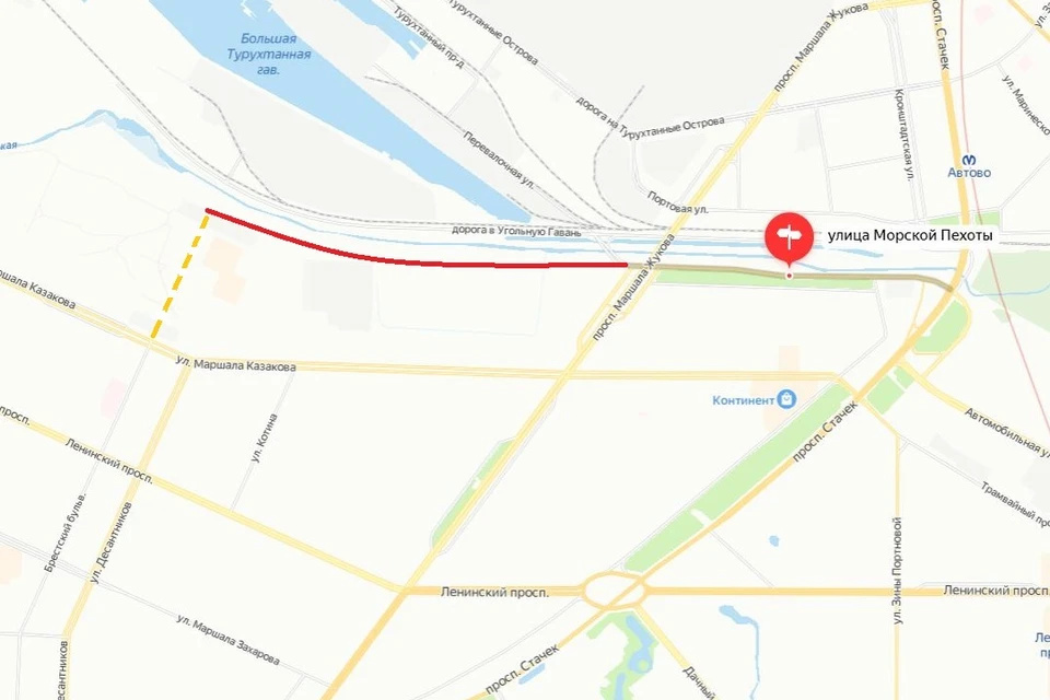 Продолжение улицы Морской Пехоты протянут от проспекта Маршала Жукова до Брестского бульвара.